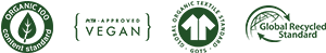 100% Cotone biologico certificato, traspirante e ipoallergenico.